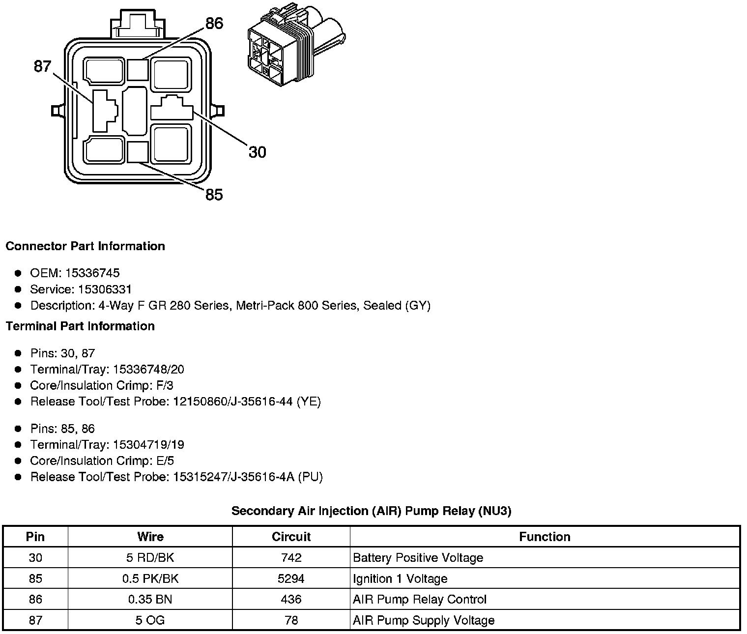 Secondary Air Injection (AIR) Pump Relay (NU3)