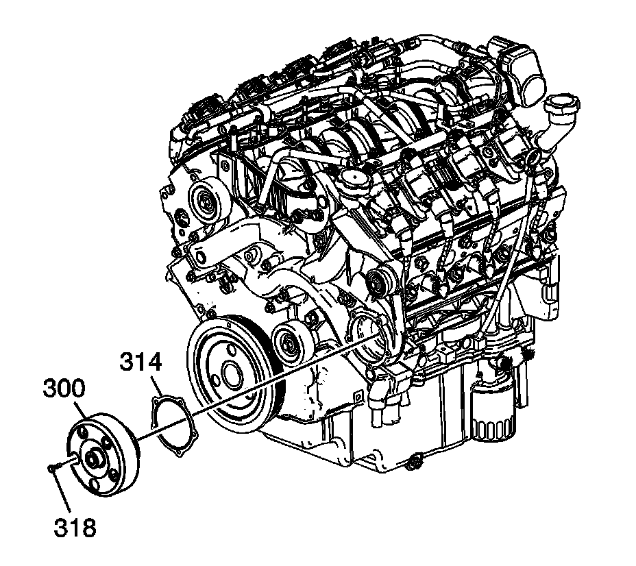 4. Install the water pump bolts (318) and tighten to 15 Nm (11 lb ft).