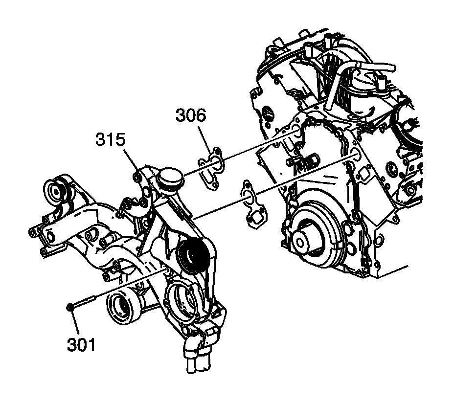 2. Install the water manifold (315), gaskets (306), and bolts (301).