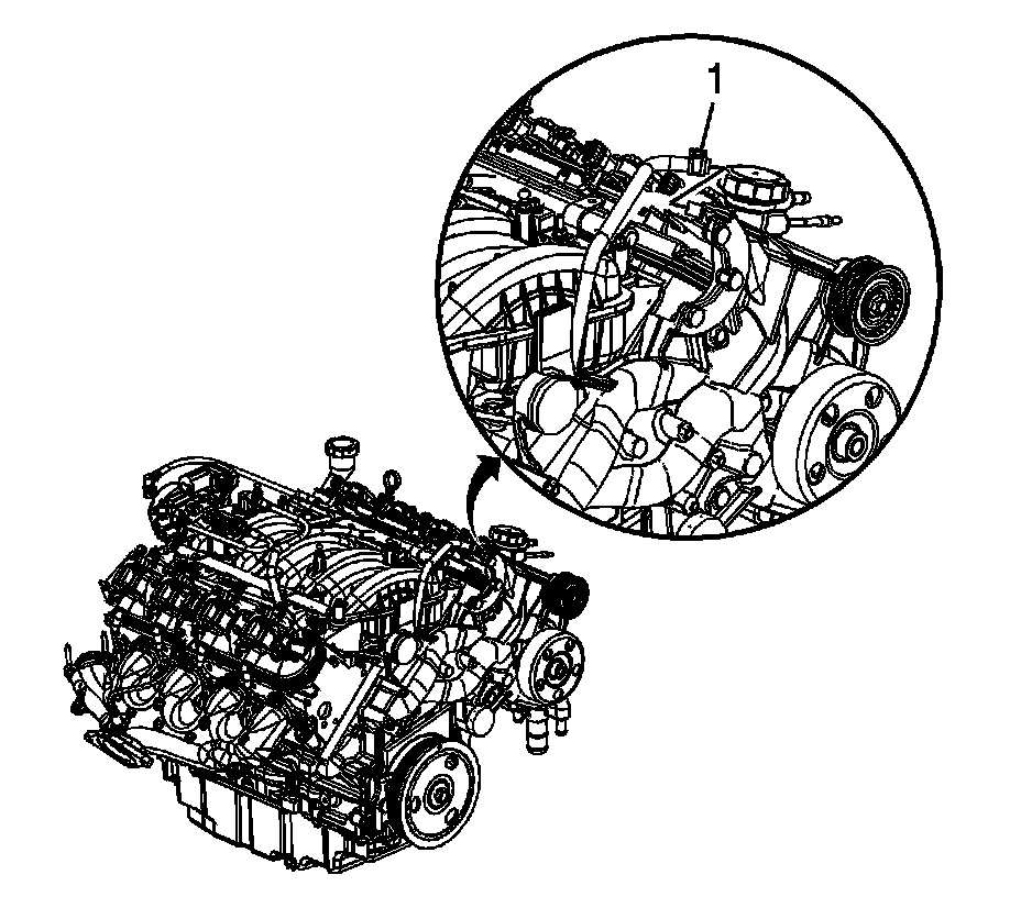 5. Install the coolant air bleed hose and clamp (1) to the manifold.