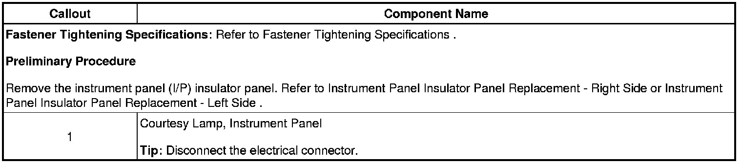Instrument Panel Courtesy Lamp Bulb Replacement