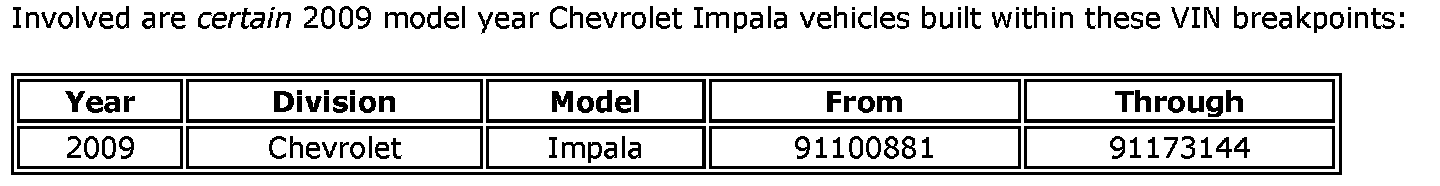 Dealers are to confirm vehicle eligibility prior to beginning repairs by using the GM Vehicle Inquiry System (GMVIS). Not all vehicles within the above breakpoints may be involved.