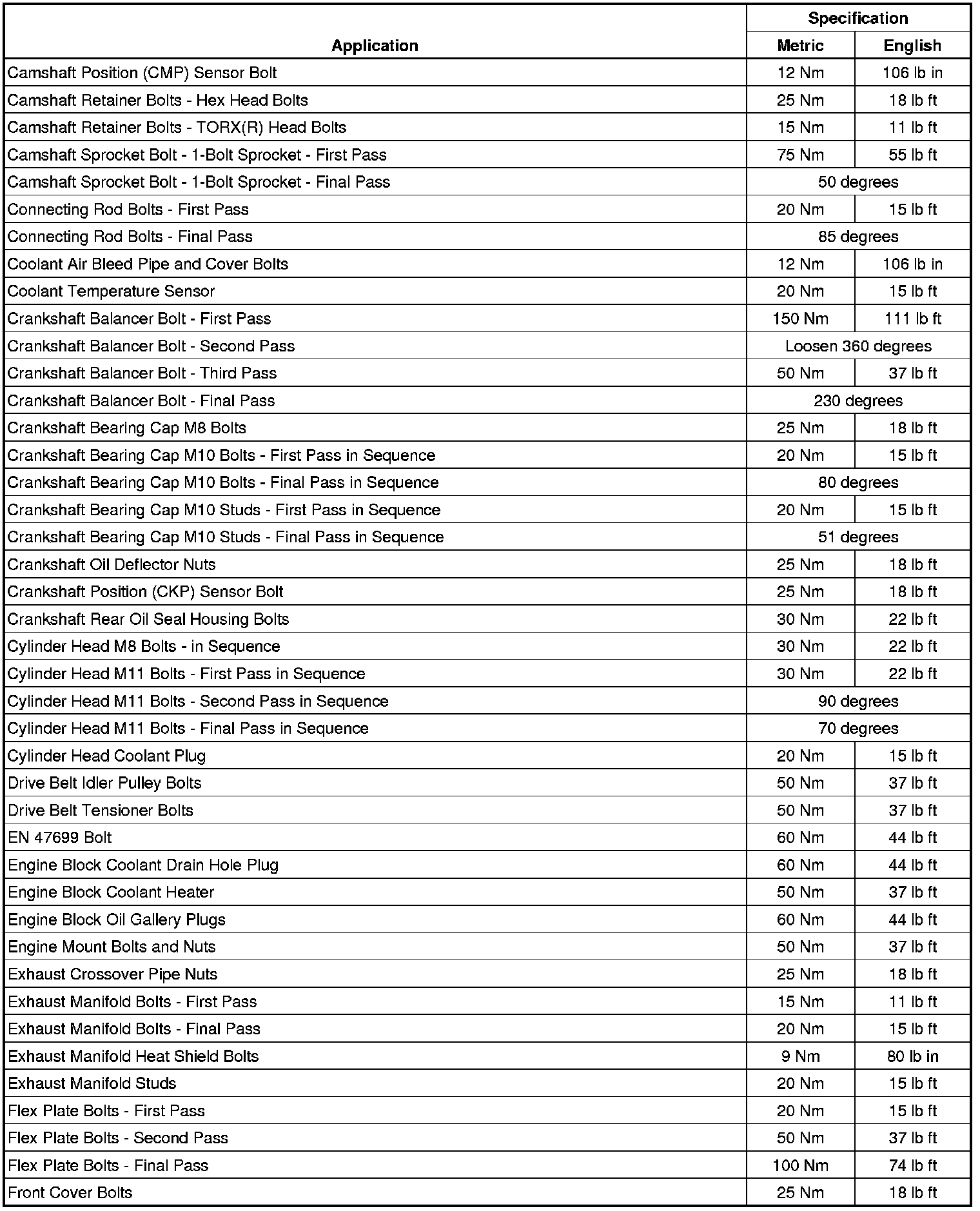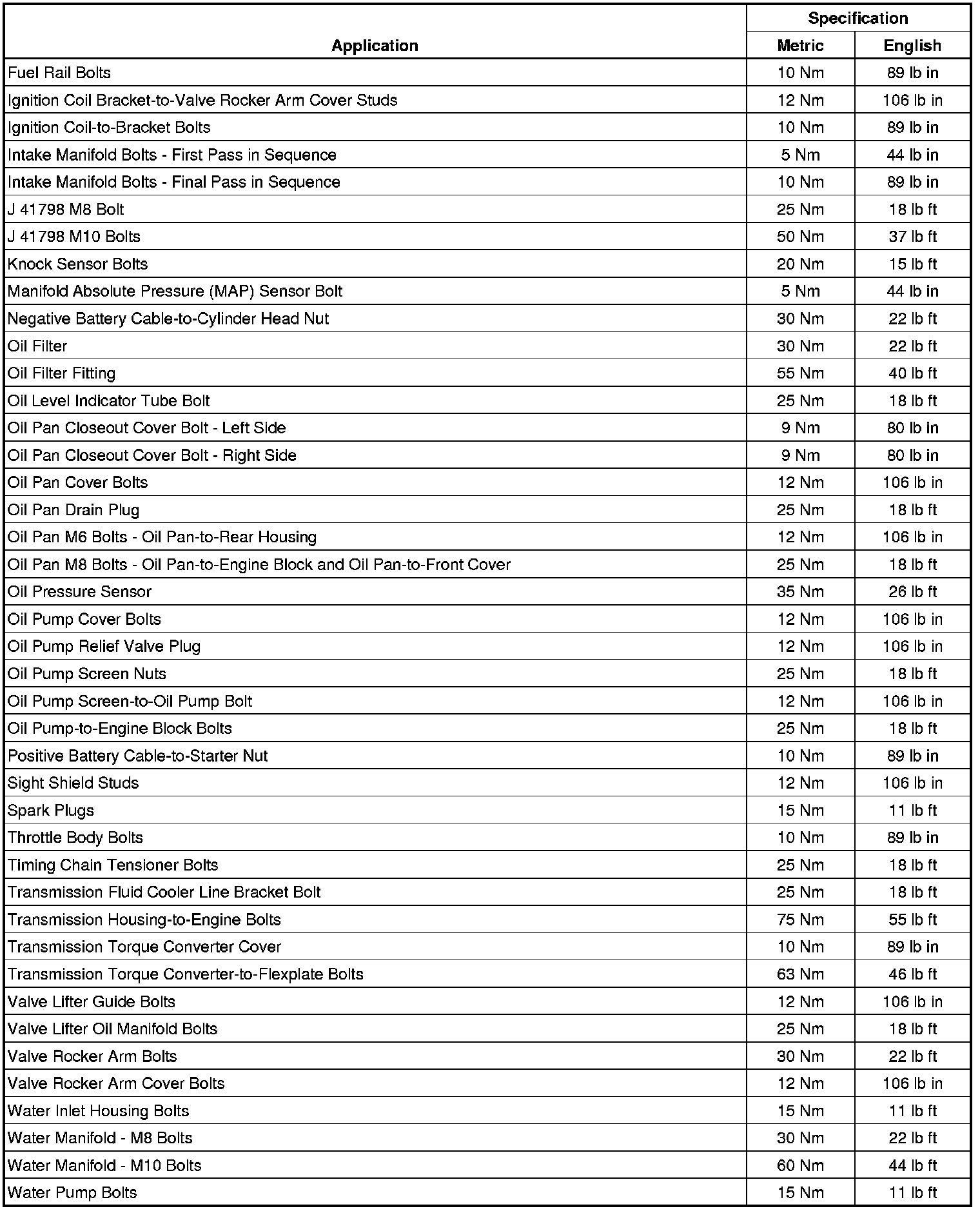 Fastener Tightening Specifications