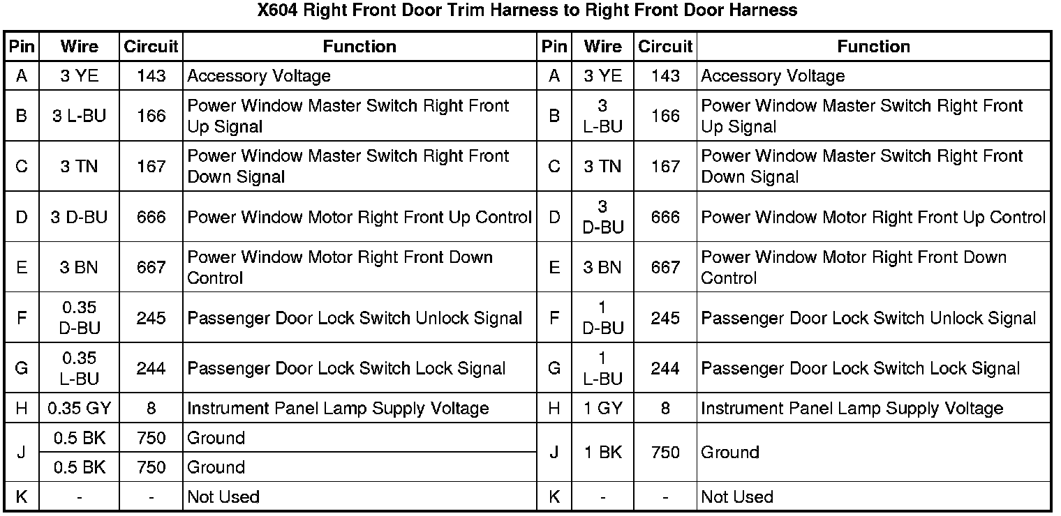 X604 Right Front Door Trim Harness to Right Front Door Harness