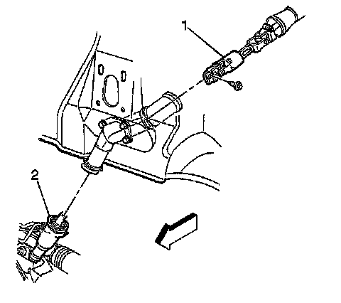 6. Remove the intermediate steering shaft (1) from the power steering gear stub shaft (2).