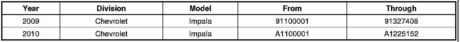 Involved are certain 2009-2010 model year Chevrolet Impala vehicles built within these VIN breakpoints: