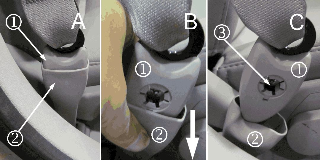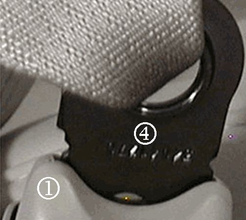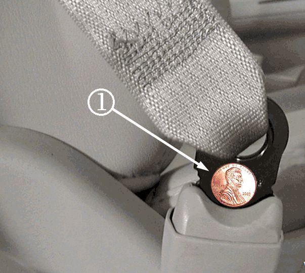 If you can stick a penny (1) between the anchor linkage ring and plastic cover, the seat belt and anchor pretensioner are incorrectly installed.