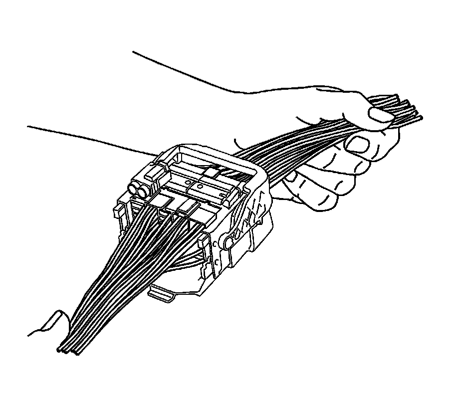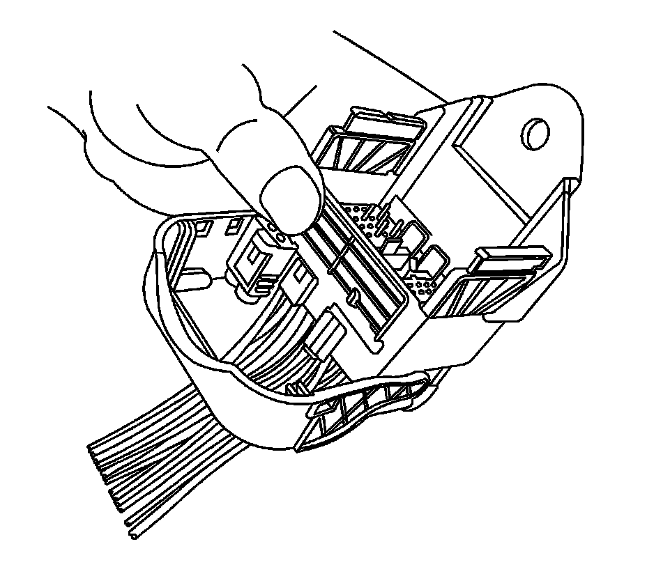 8. The female connector body may have an additional connector hooked to the edge of the body. Use terminal release tool 12094430 or equivalent to release the locking tab and slide the connector off the female body.