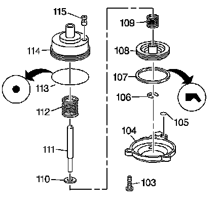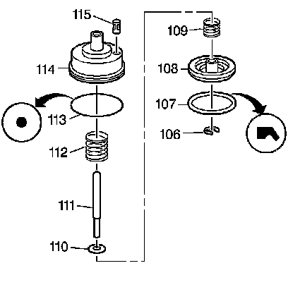 7. Install the servo piston and spring assembly (106-112) into the servo piston cylinder assembly (113-115) and set the assemblies aside.