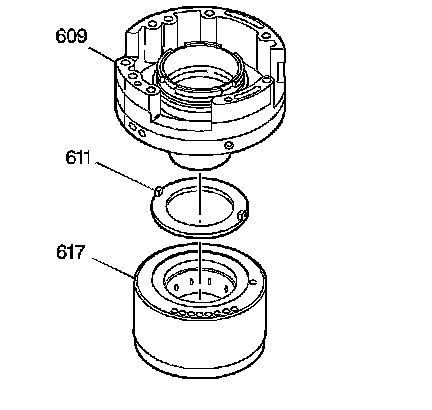 4. When the clutches apply and hold correctly, remove the driven sprocket support assembly (609) and the second clutch housing thrust washer (611) from the second clutch housing assembly (617).