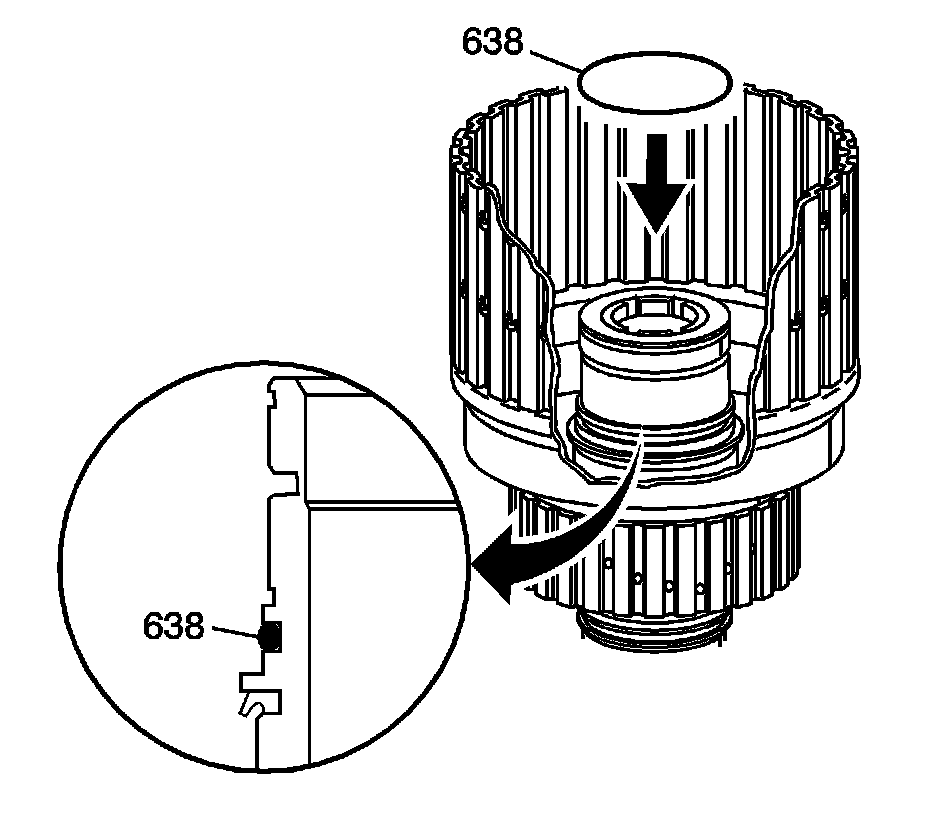 9. Install the input clutch spring and retainer assembly (637) into the input shaft and housing assembly.