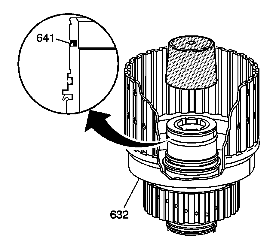 14. Install the third clutch spring retainer and guide assembly (643) into the input shaft and housing assembly (632).