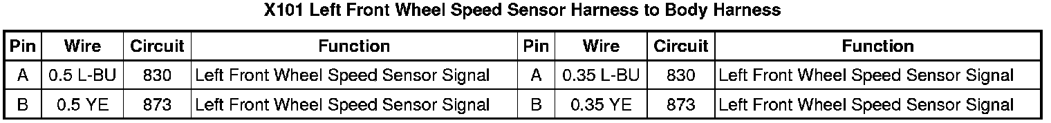X101 Left Front Wheel Speed Sensor Harness to Body Harness