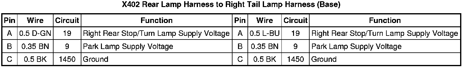 X402 Rear Lamp Harness to Right Tail Lamp Harness (Base)