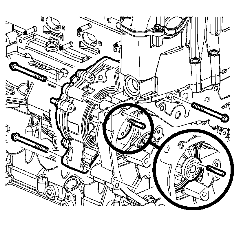 Note: A guide pin can be created to aid in water pump alignment. Use a M6 m x 6 mm stud. Thread the pin into the water pump sprocket.