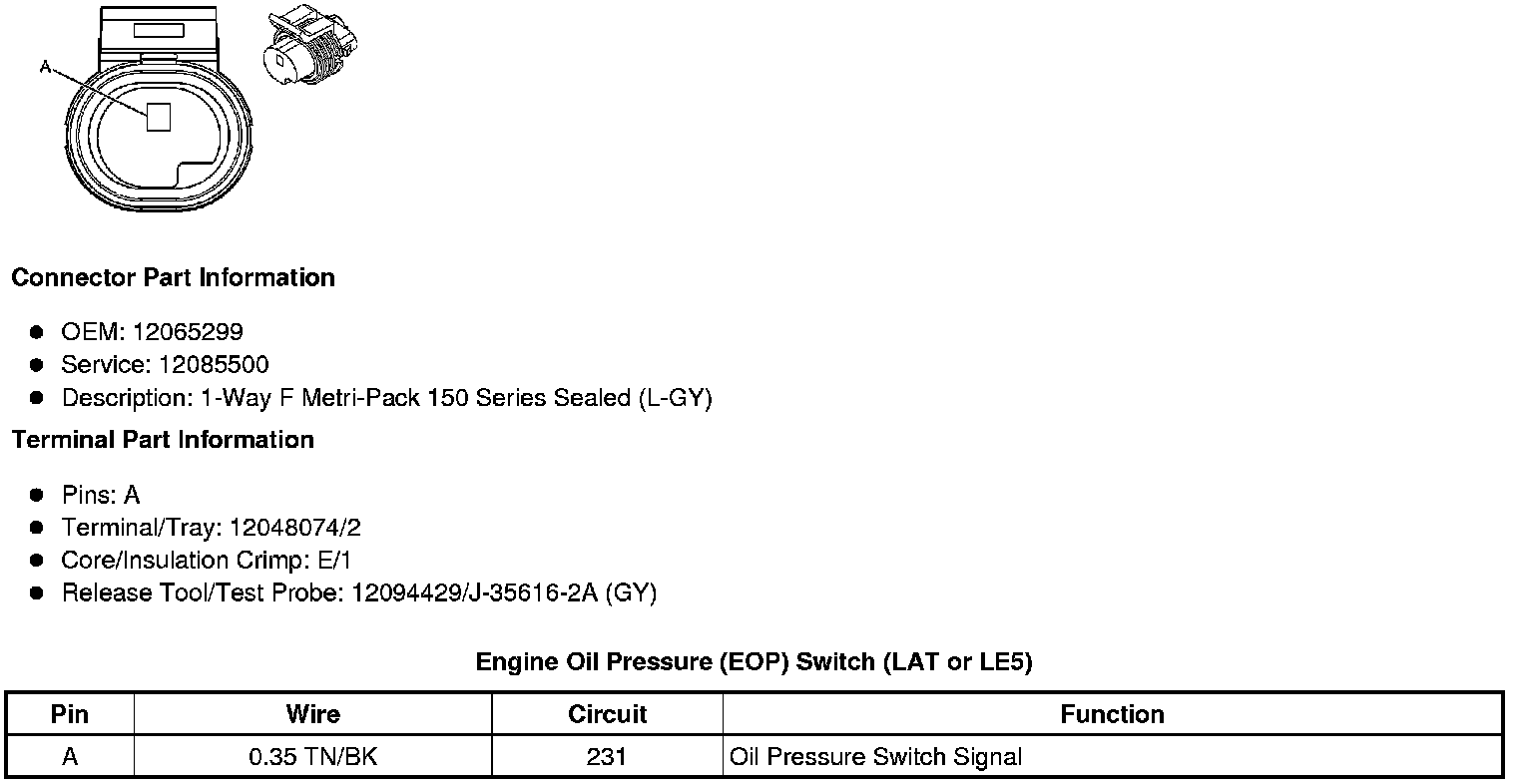 Engine Oil Pressure (EOP) Switch (LAT or LE5)