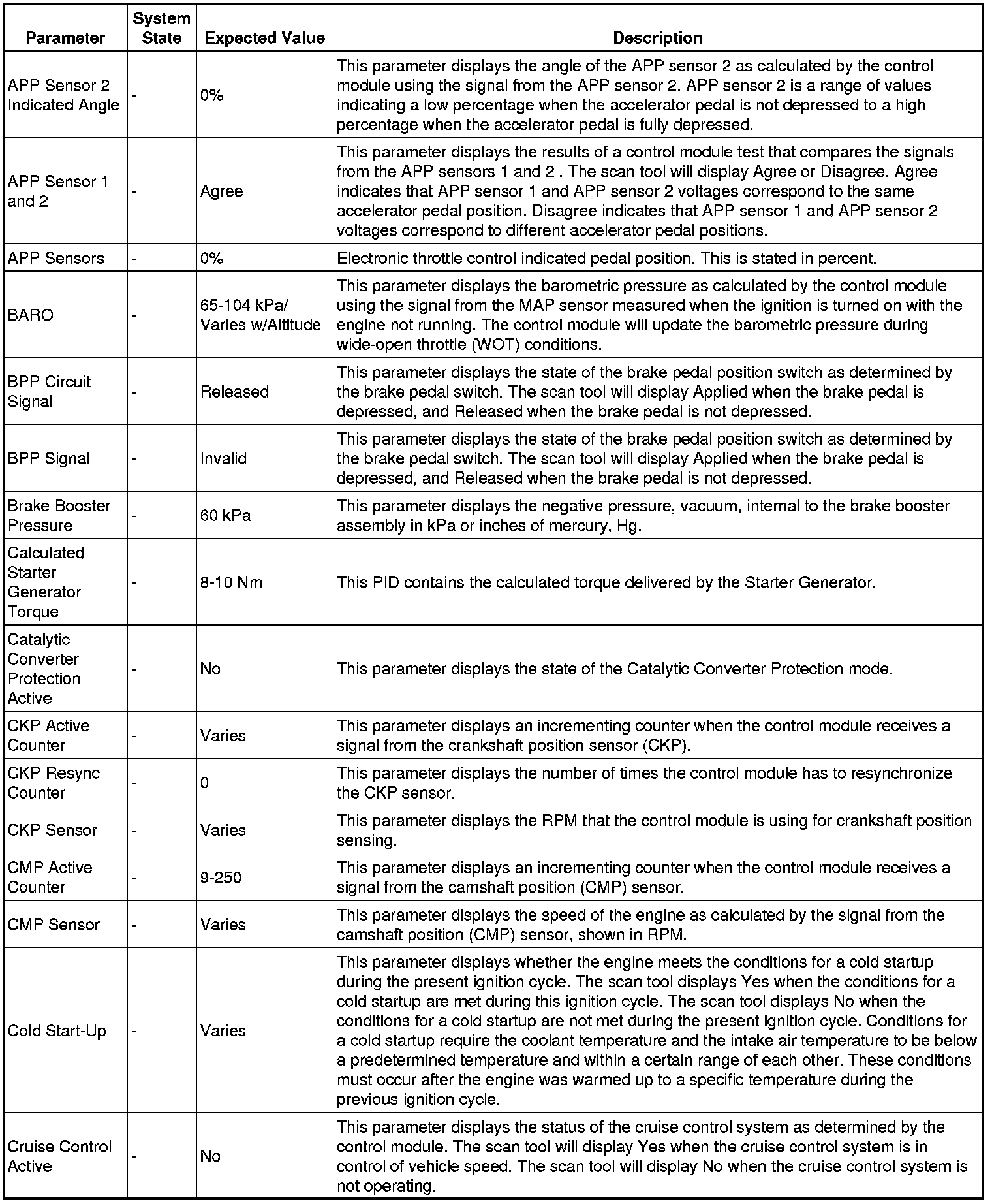 The Engine Scan Tool Data List contains all engine related parameters that are available on the scan tool. The list is arranged in alphabetical order.