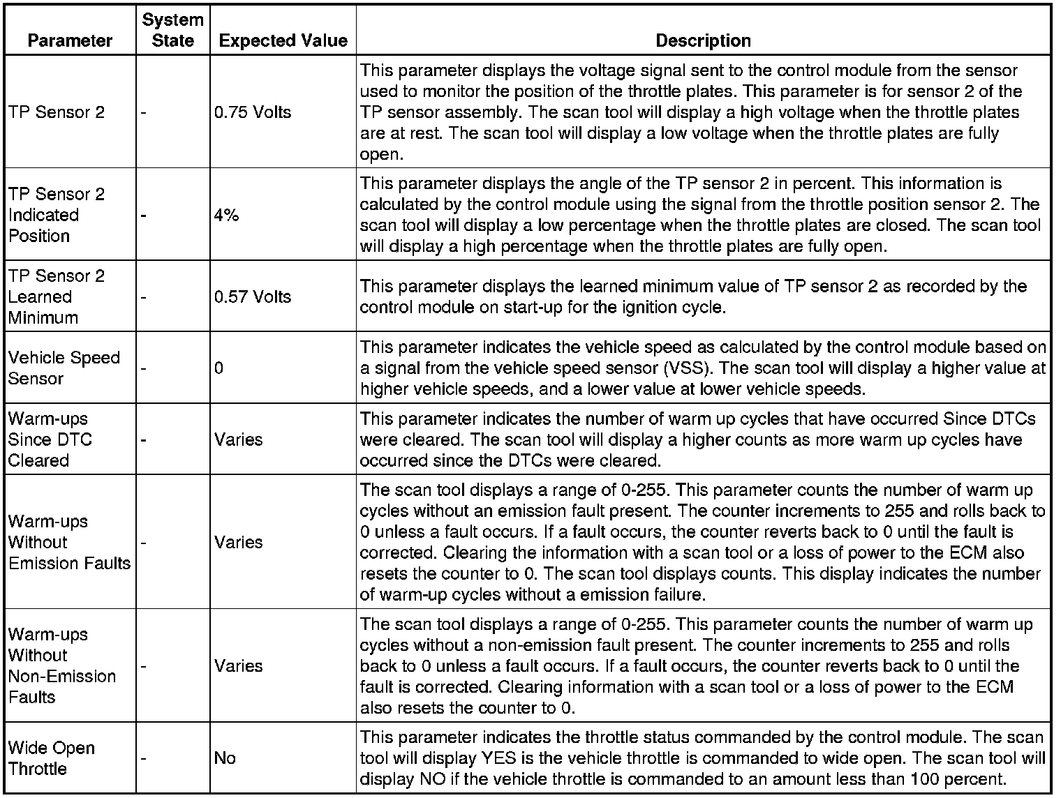 Only the parameters listed below are referenced in this service manual for use in diagnosis. If all values are within the typical range described below, refer to Symptoms - Engine Controls (- Symptoms - Engine Controls) for diagnosis.