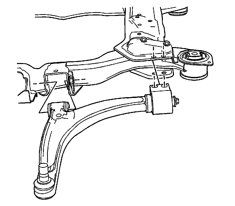 8. Remove the rear lower control arm bushing nuts and bolts. Refer to Front Lower Control Arm Bushing Replacement (Service and Repair).