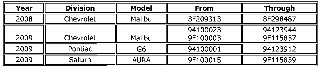 A list of involved vehicles currently in dealer/retailer inventory is available on the "Service Update Bulletin Information" link under the "Service" tab in DealerWorld (GM and Saturn US) or attached to the Dealer Communication (Canada) used to release this bulletin. Customer vehicles that return for service, for any reason, and are still covered under the vehicle's base warranty, and are within the VIN breakpoints shown above, should be checked for vehicle eligibility in the appropriate system listed.