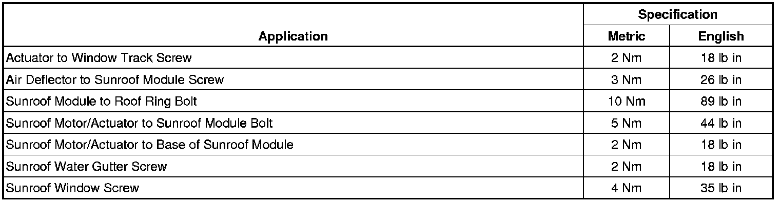 Sunroof / Moonroof: Specifications