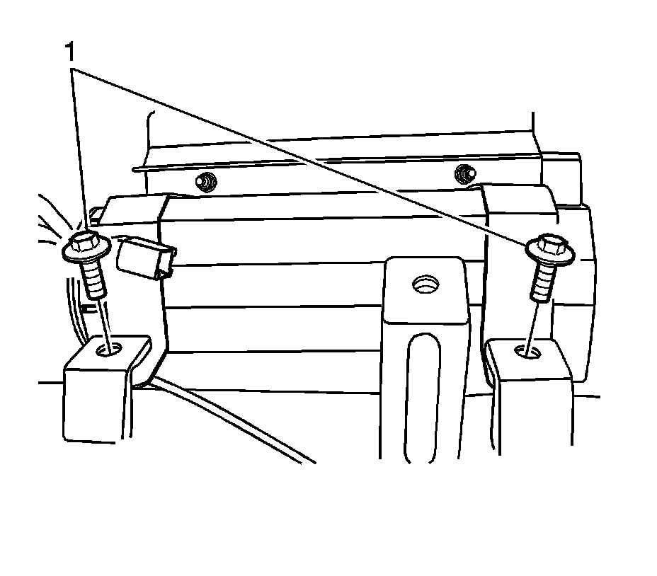 5. Remove the air bag module mounting bolts (1) from the tie bar.