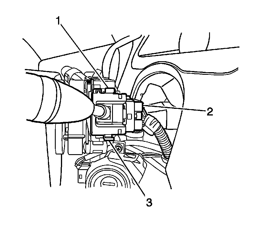 2. Install the wiper switch into the switch housing with the tabs (1, 3) on either side of the switch housing.