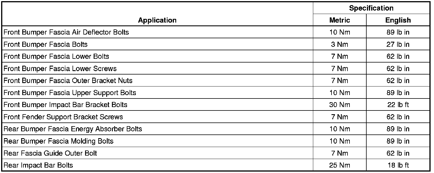 Bumper: Specifications