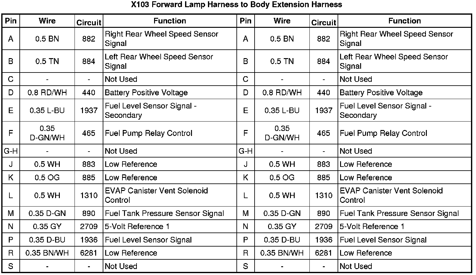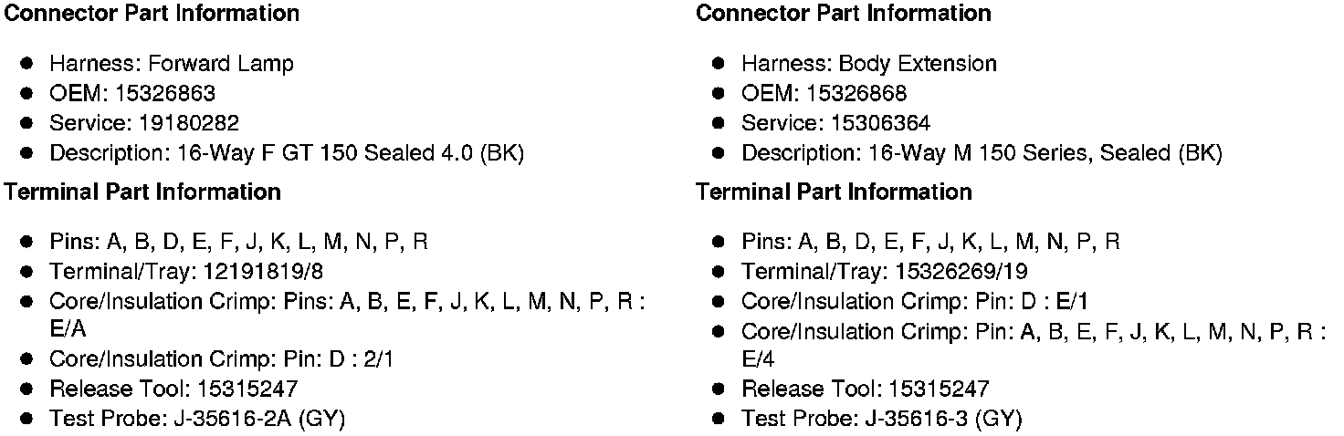 X103 Forward Lamp Harness to Body Extension Harness