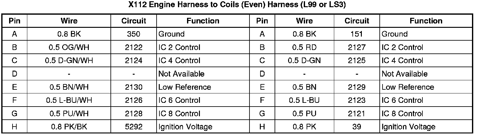 X112 Engine Harness to Coils (Even) Harness (L99 or LS3)