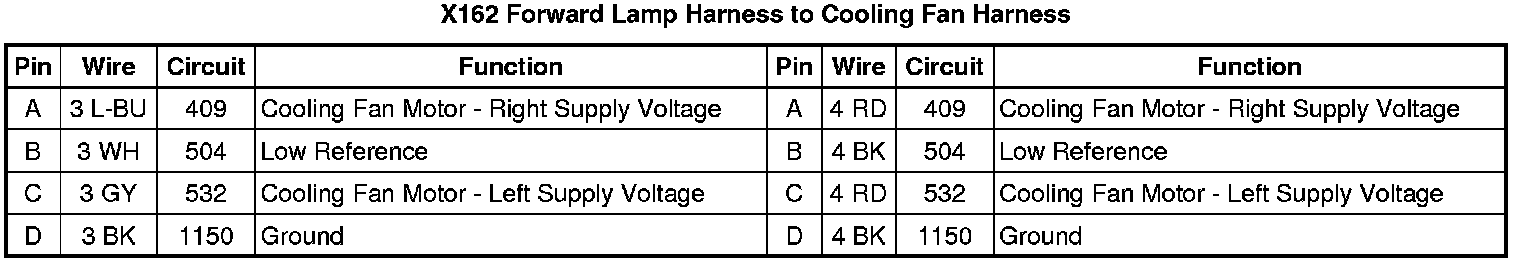 X162 Forward Lamp Harness to Cooling Fan Harness