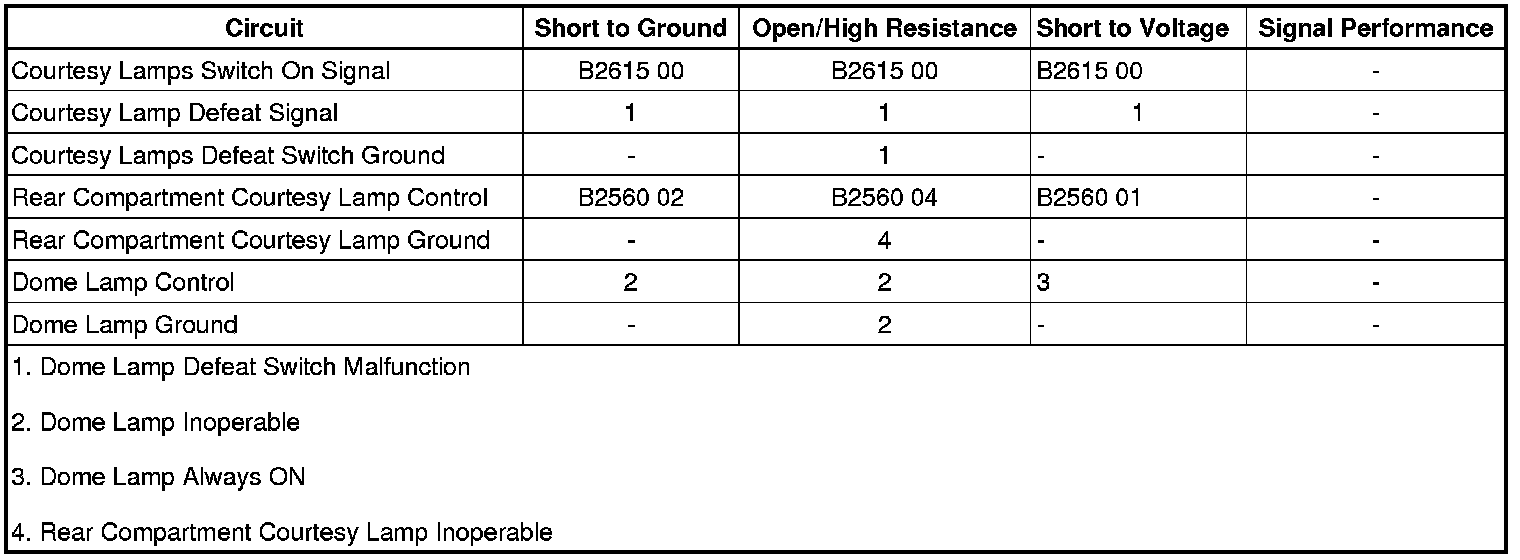 • If the courtesy lamps do not turn ON and OFF when commanded, refer to Dome Lamp Malfunction.