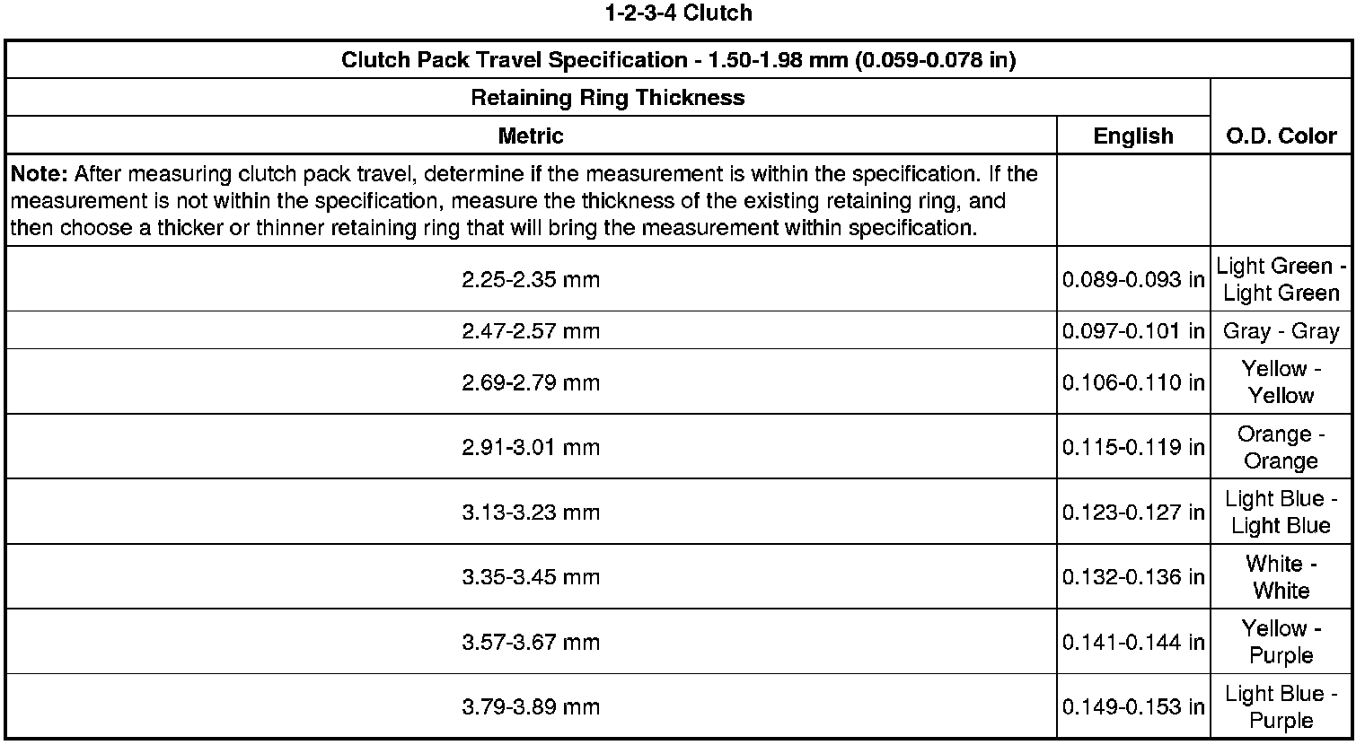 Clutch Backing Plate Retaining Ring Specifications