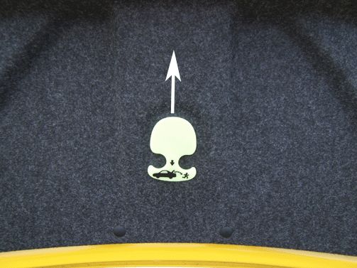 4. Install a 25 mm x 25 mm (1.0 in x 1.0 in) piece of hook and loop material, such as 3M(TM) Scotchmate Hook and Loop Fastening System*, P/N051131-06480, or the equivalent, to the ETR handle as shown. This will prevent the ETR handle from moving out of position when not in use.