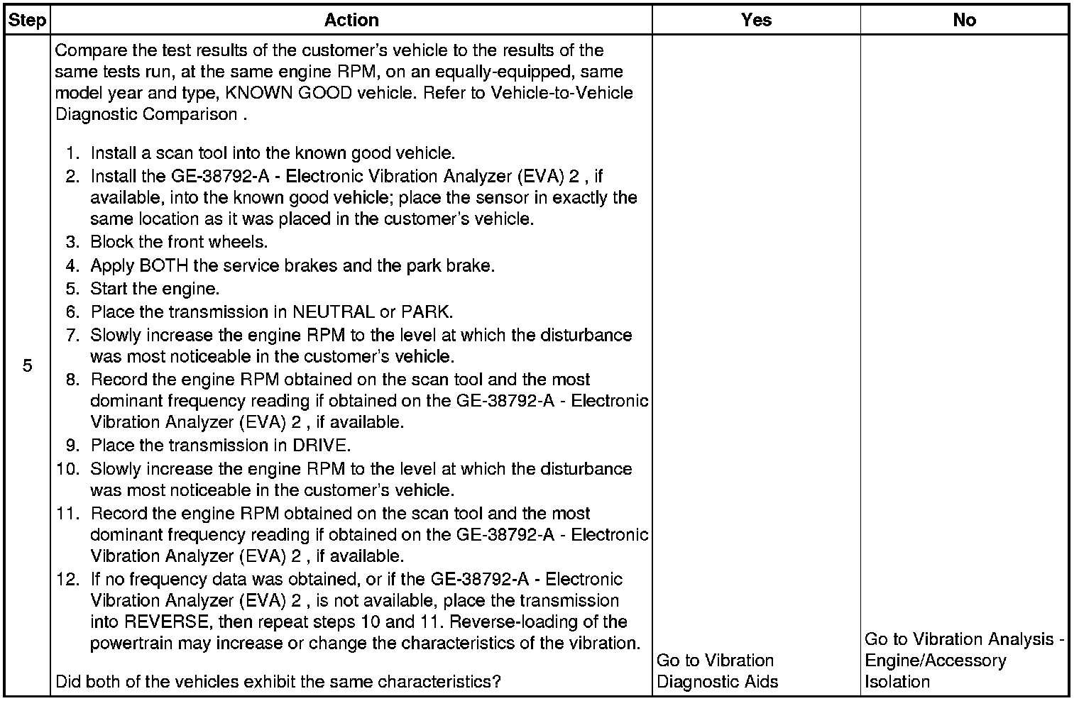 5. Making comparisons of the customer's vehicle with an equally equipped, same model year and type, KNOWN GOOD vehicle will help determine if certain disturbances may be characteristic of a vehicle design.