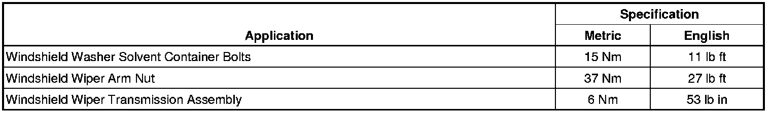 Wiper and Washer Systems: Specifications