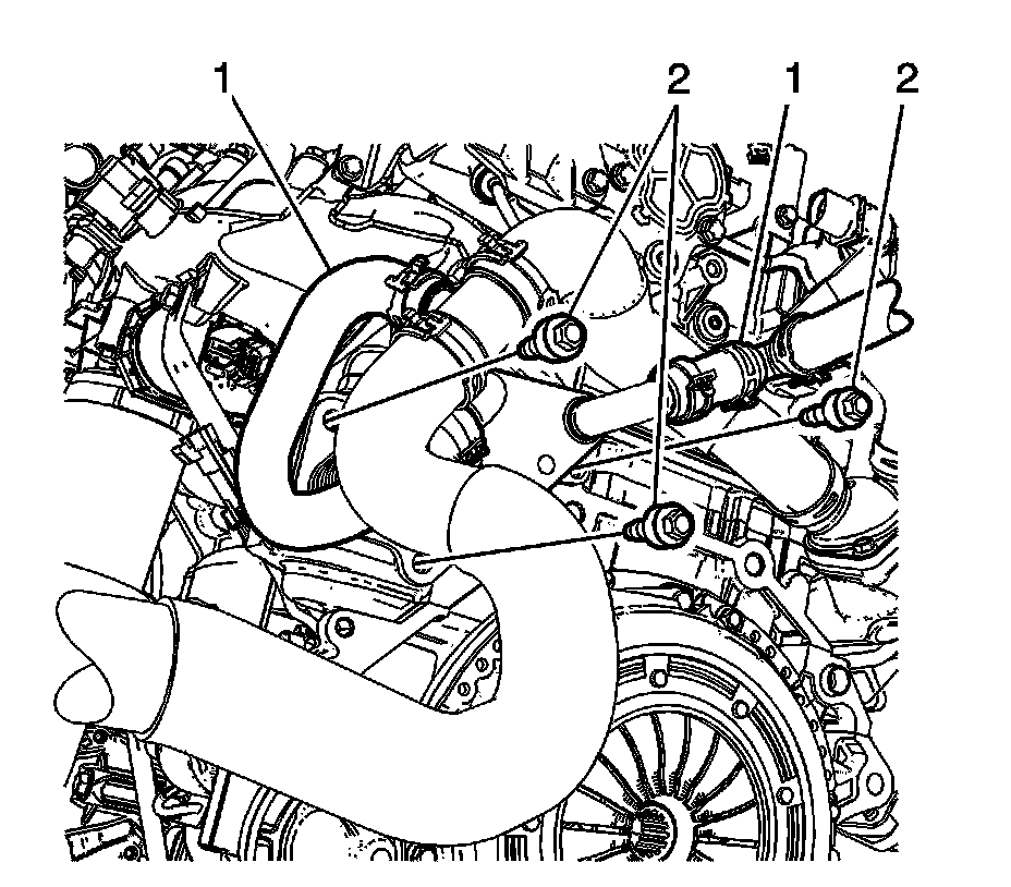 1. Drain the charged air cooling system. Refer to Cooling System Draining and Filling (Static Fill LE5, L61) (Cooling System Draining and Filling (Static Fill))Cooling System Draining and Filling (Static Fill LNF) (Cooling System Draining and Filling (Static Fill))Cooling System Draining and Filling (GE 47716 Fill) (Cooling System Draining and Filling (GE 47716 Fill)).