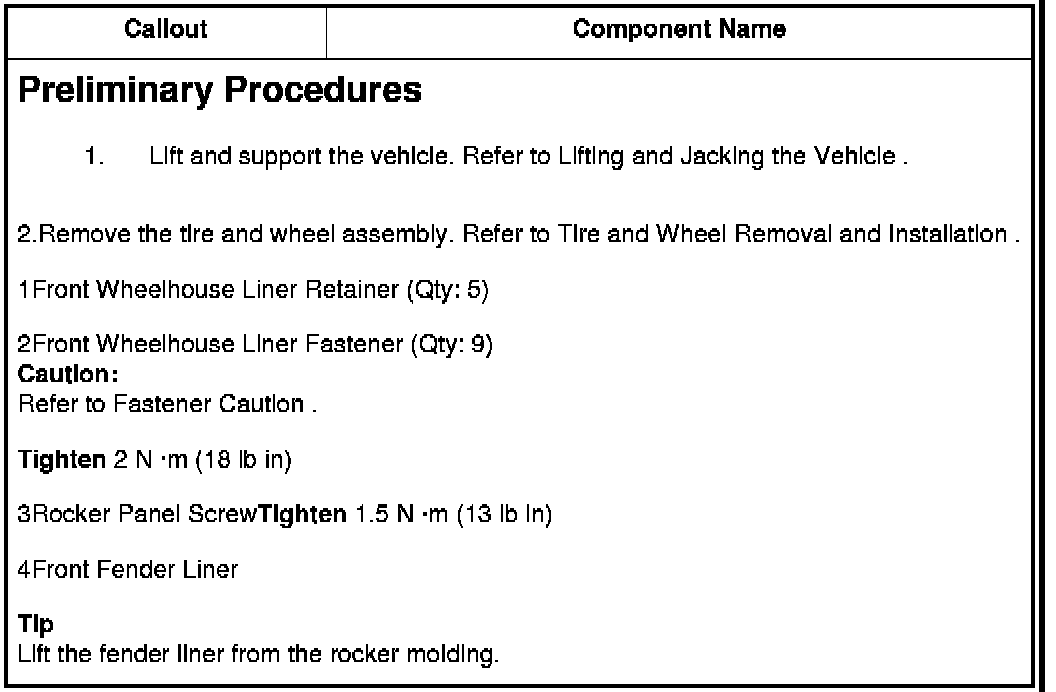 3Rocker Panel ScrewTighten 1.5 N �m (13 lb in)
