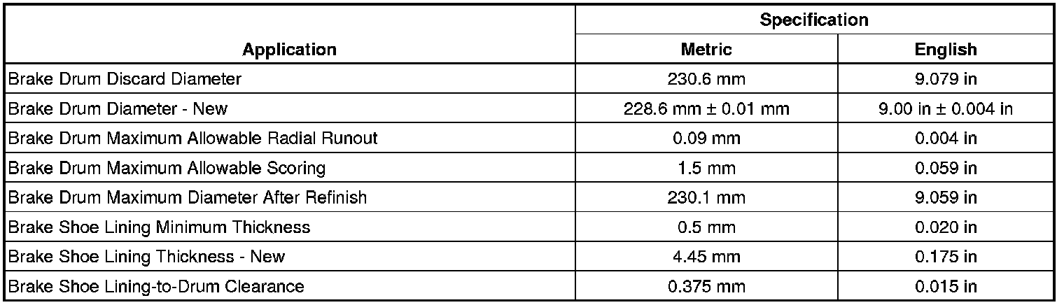 Drum Brake Component Specifications