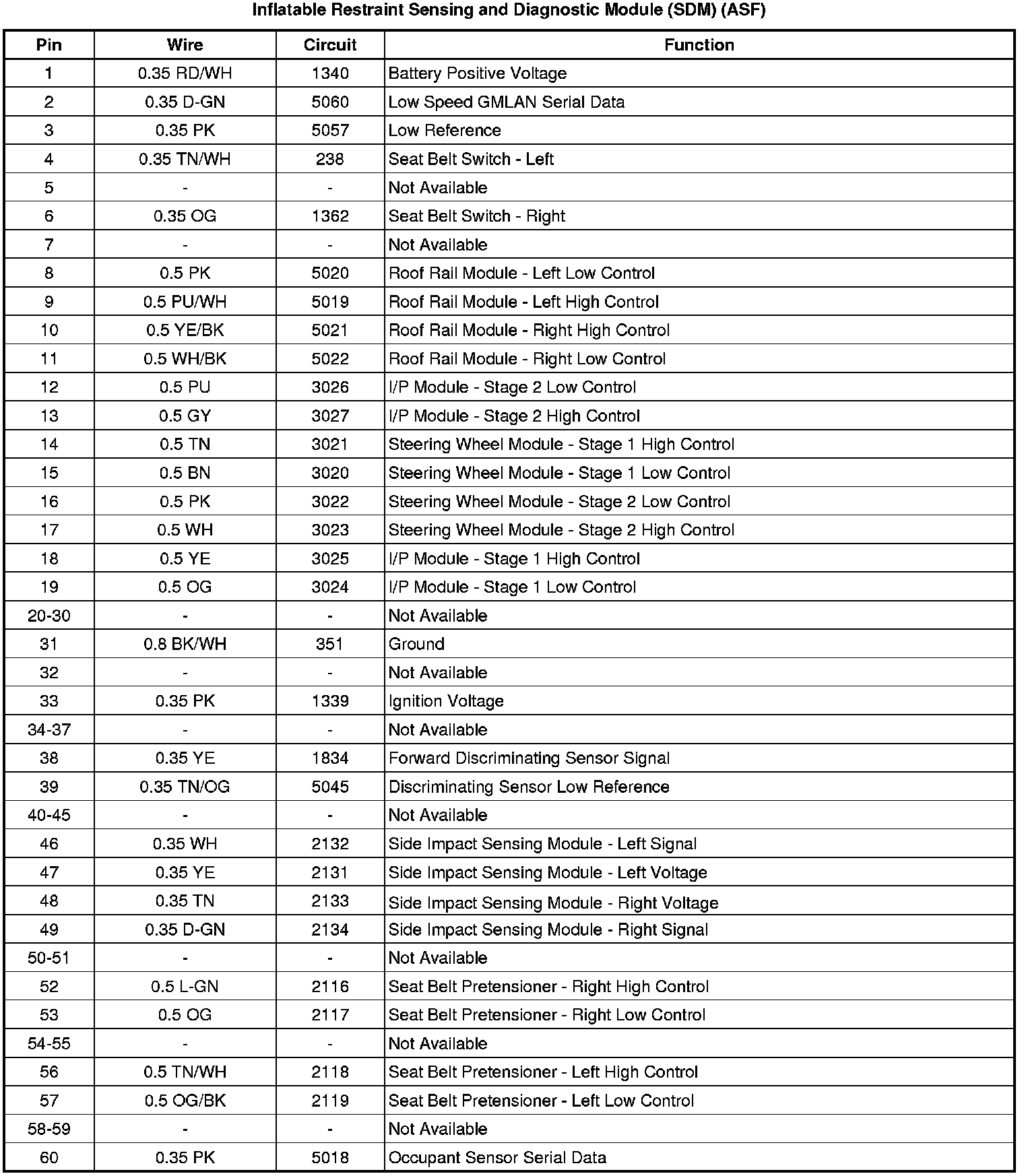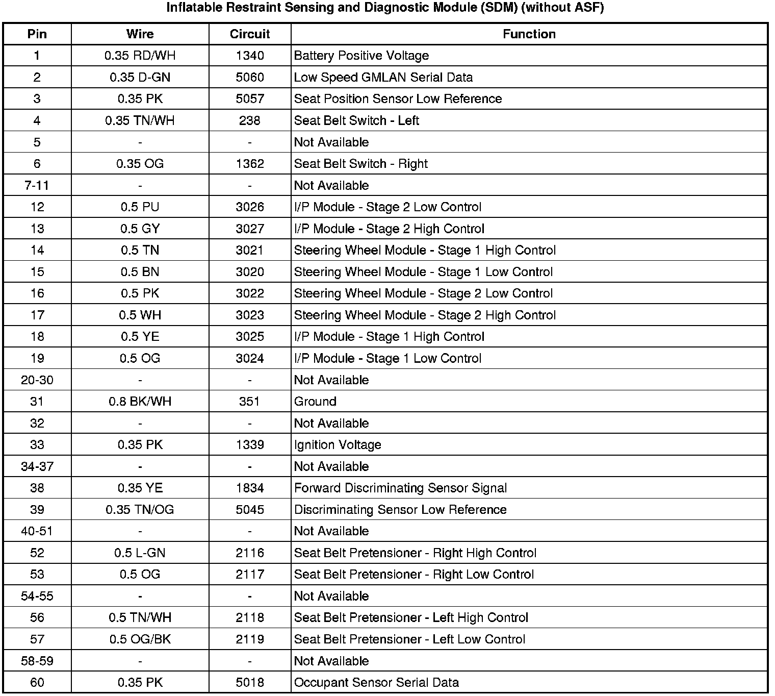 Inflatable Restraint Sensing and Diagnostic Module (SDM) (without ASF)