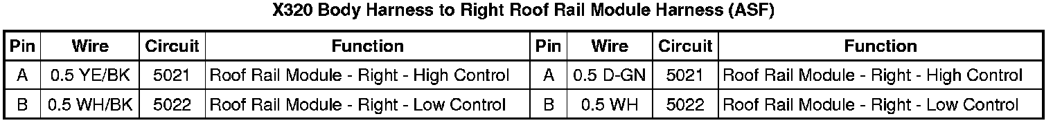 X320 Body Harness to Right Roof Rail Module Harness (ASF)