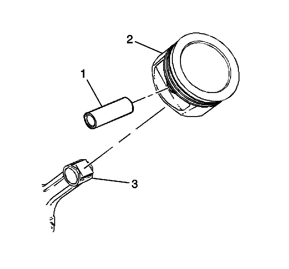 3. Remove the piston pin (1) and the connecting rod (3) from the piston (2).
