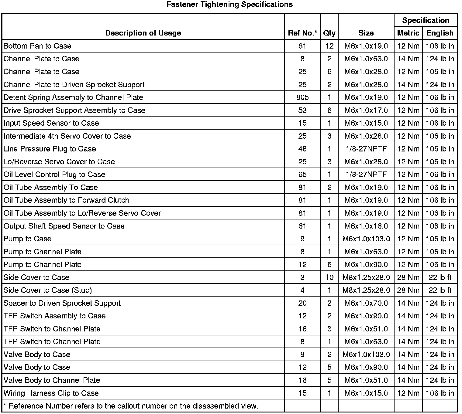 Fastener Tightening Specifications