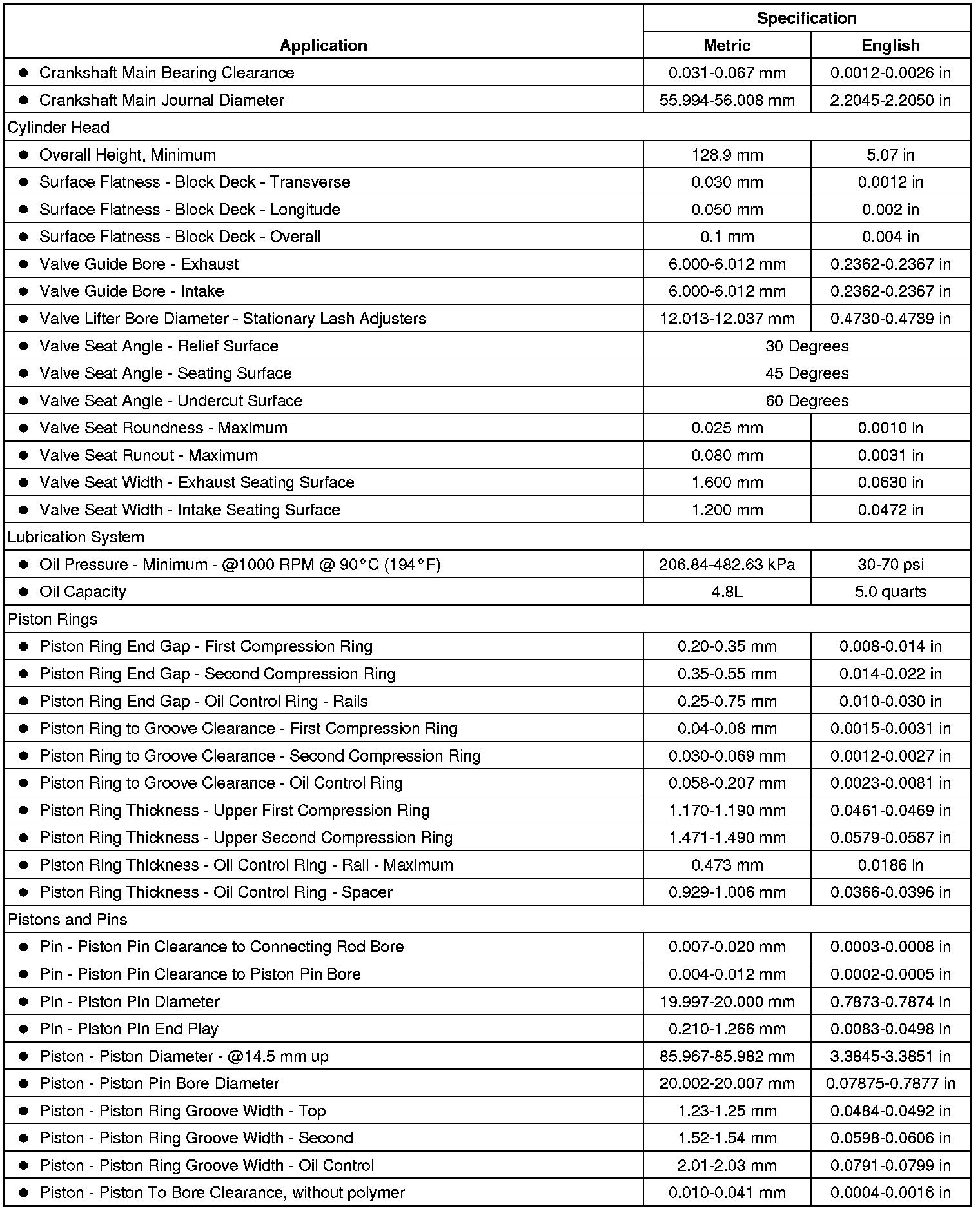 Engine Mechanical Specifications