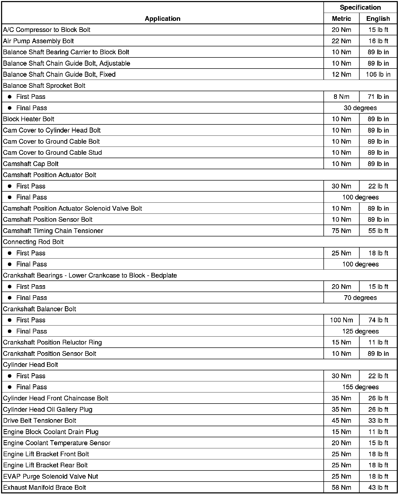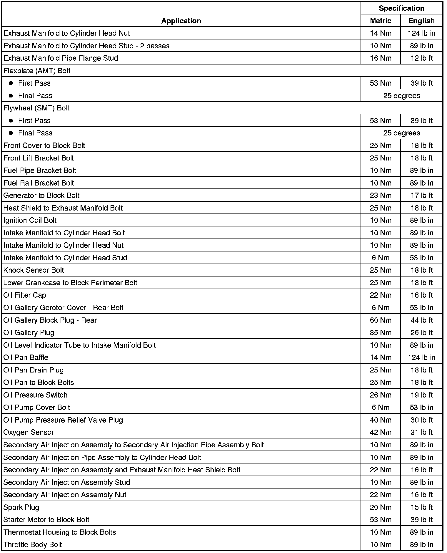 Fastener Tightening Specifications