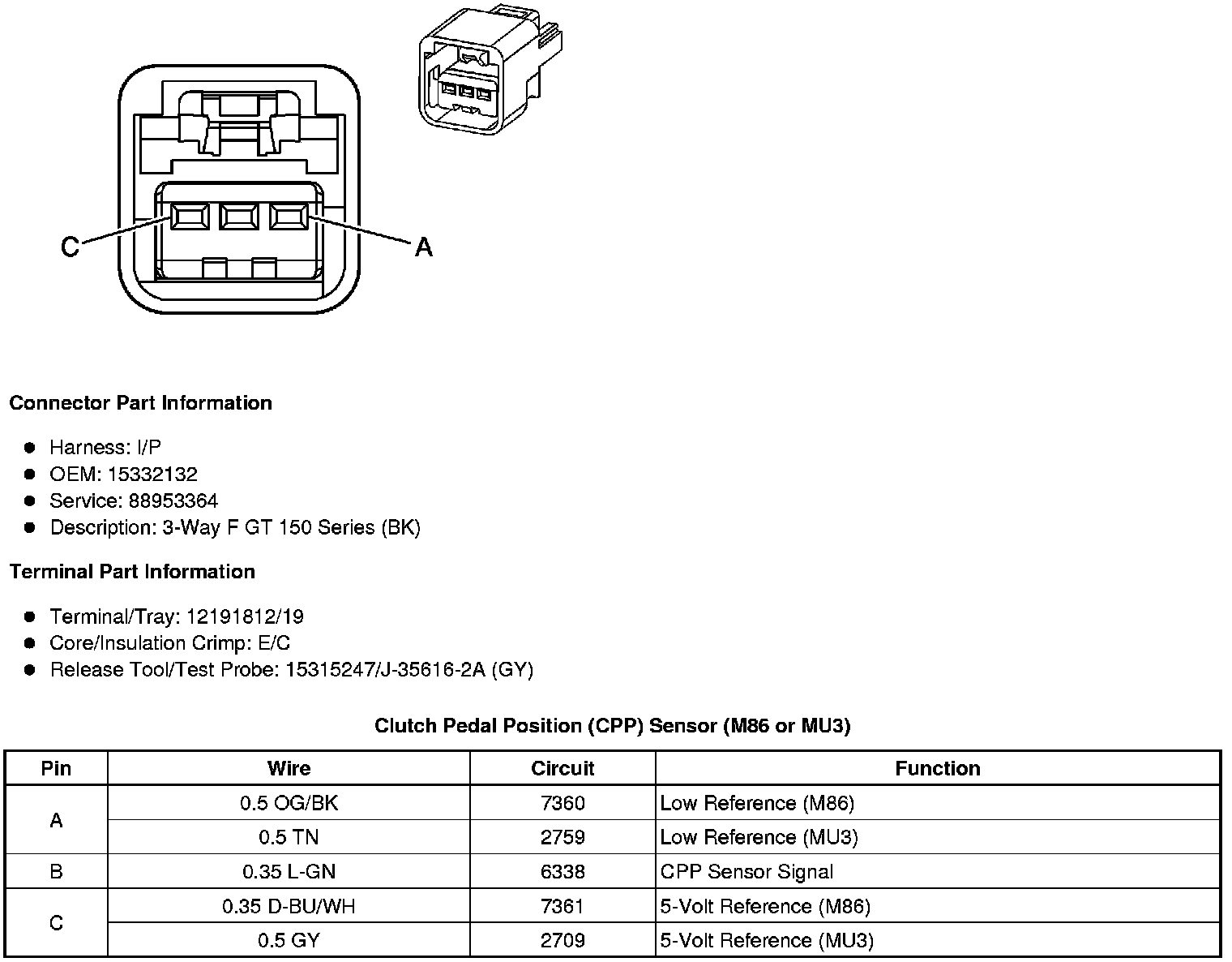 Clutch Pedal Position (CPP) Sensor (M86 or MU3)