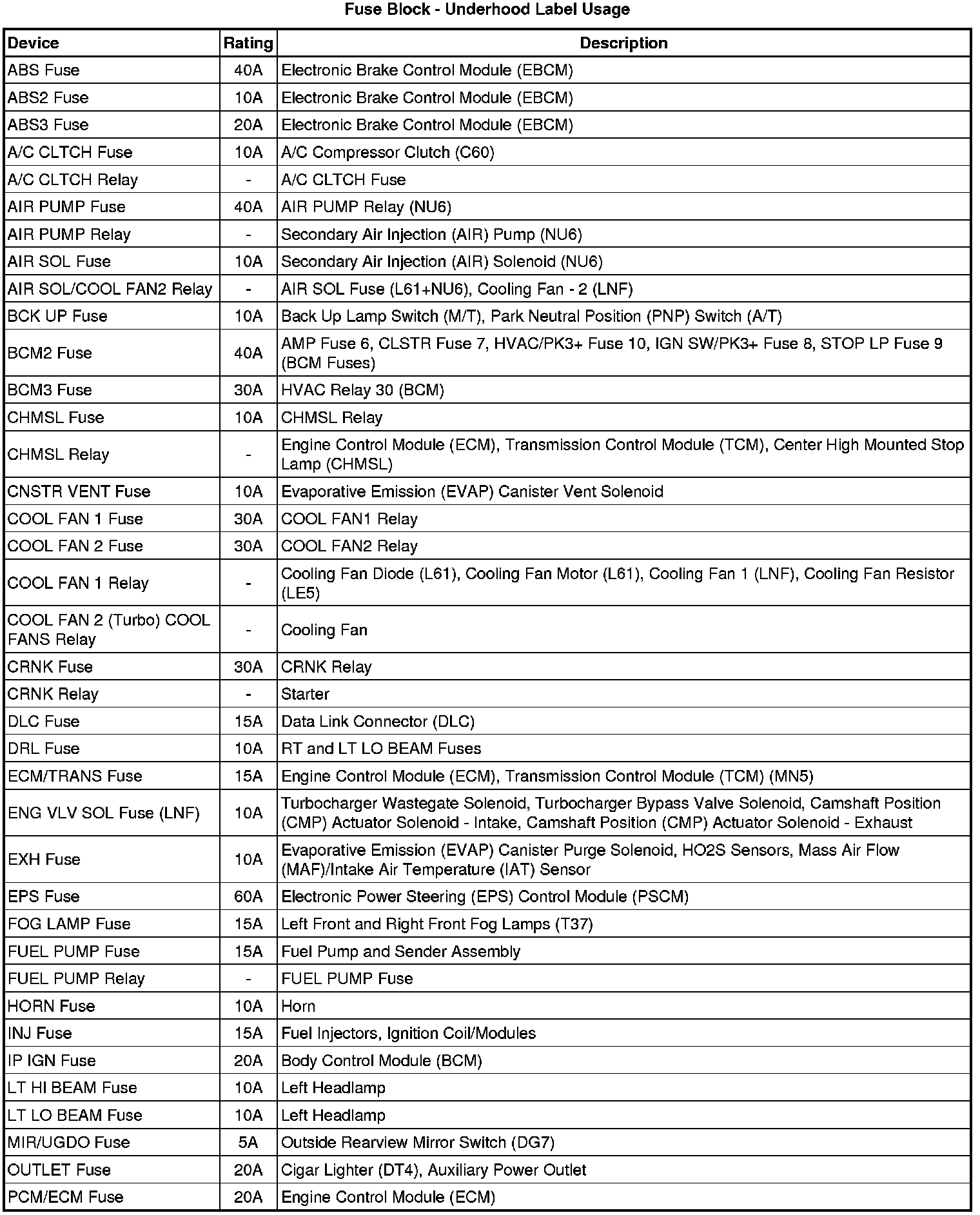 Fuse Block - Underhood Label