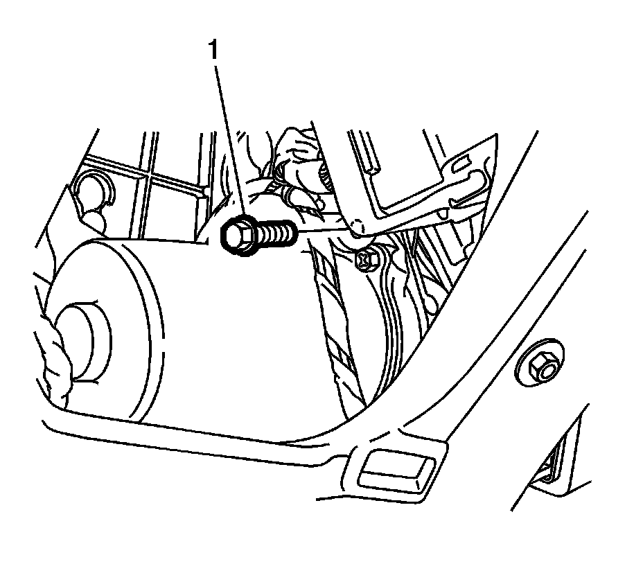 7. Use a 12 mm socket in order to remove the power steering assist motor lower bolt (1).