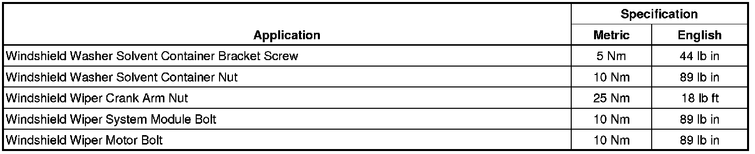 Wiper and Washer Systems: Specifications