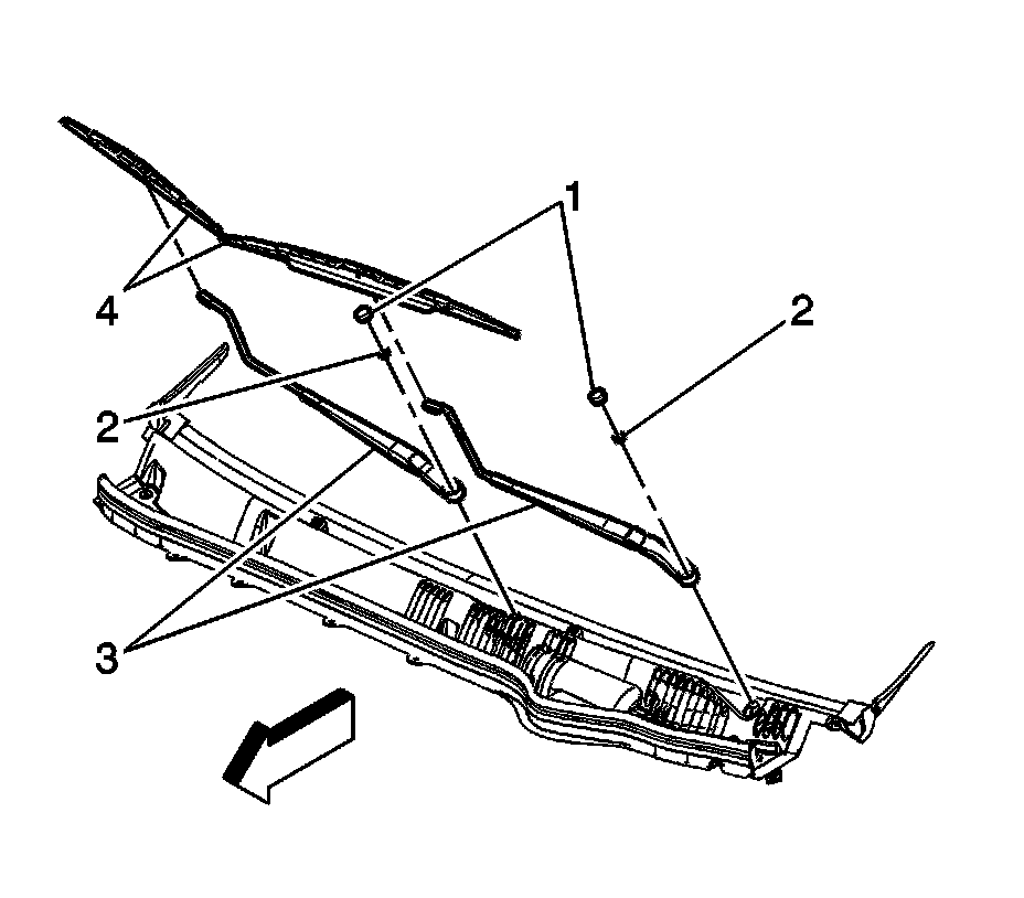 1. Install the wiper arms onto the wiper transmission pivot shaft.